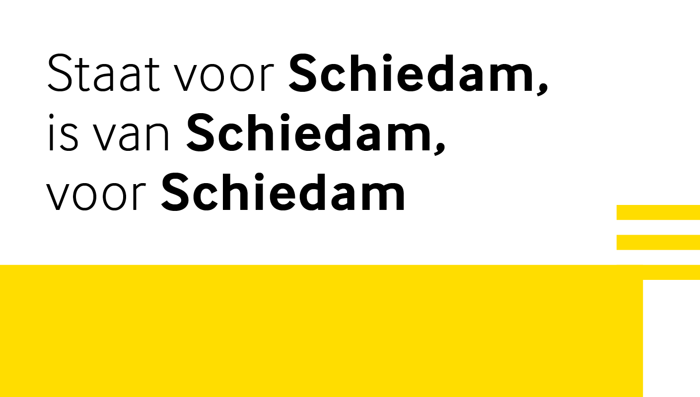 Een heldere huisstijl leidt tot effectieve communicatie en faciliteert het tonen van trots op het DNA van de gemeente. Een goed contrast tussen de huisstijl van de gemeente Schiedam en de stadstijl S’dam is het uitgangspunt om afzenderschap en verantwoordelijkheid voor gemeentelijke communicatie te waarborgen.