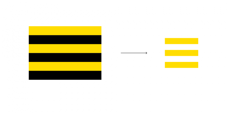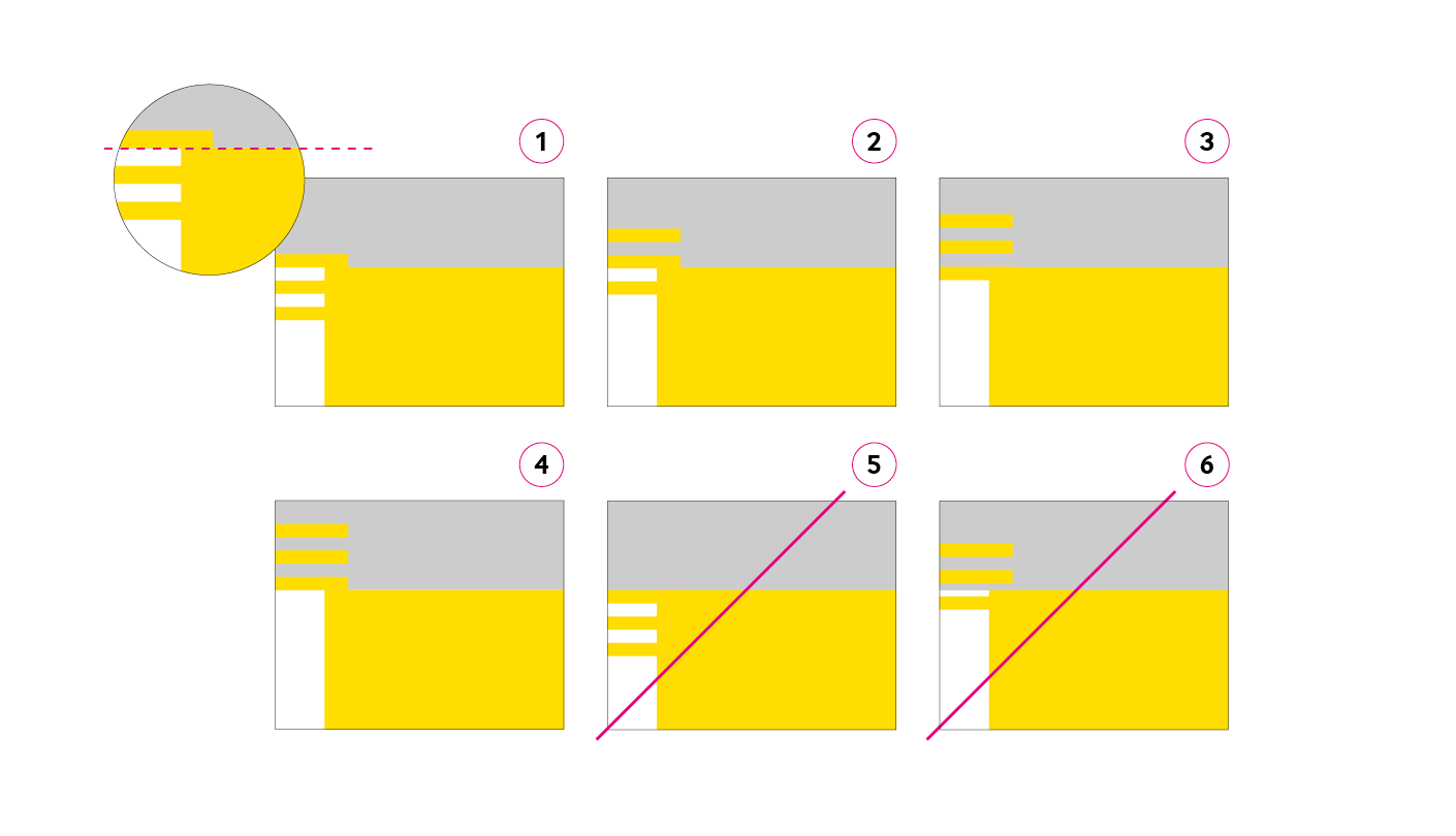 5. - Niet toegestaan: het vlag-element is slecht zichtbaar. De breedte van de gele strepen versmelten met het kleurvlak.
