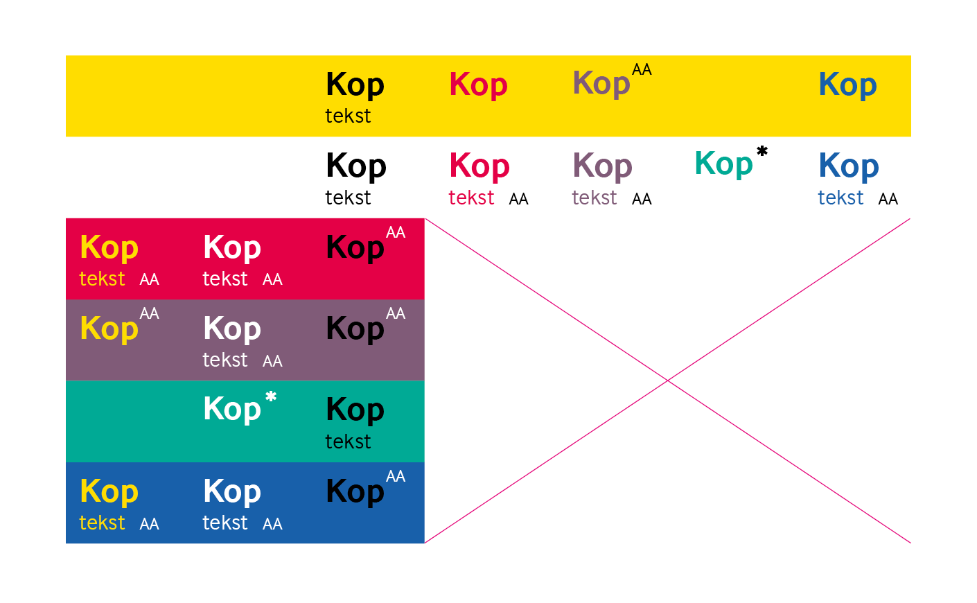 De primaire kleur mag gebruikt worden in kleurvlakken en in typografie. Zorg voor een goede leesbaarheid van de typografie voor alle gebruikers.