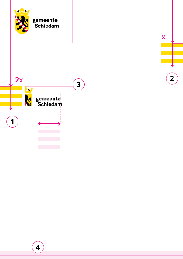 3. De maatvoering van het vlag-element is gelijk aan het logo